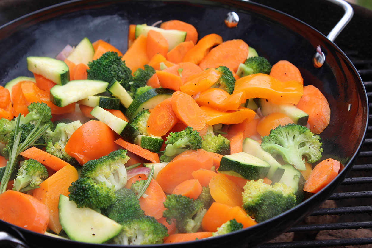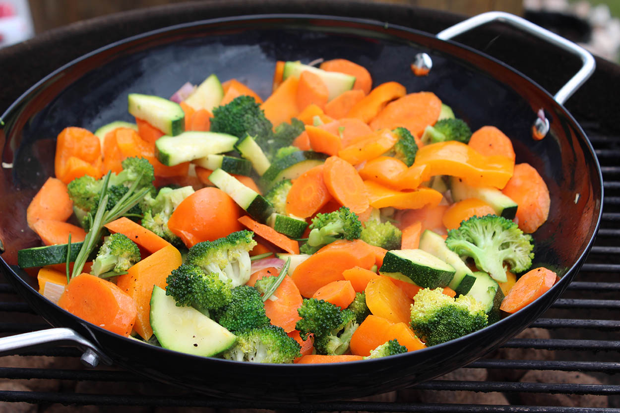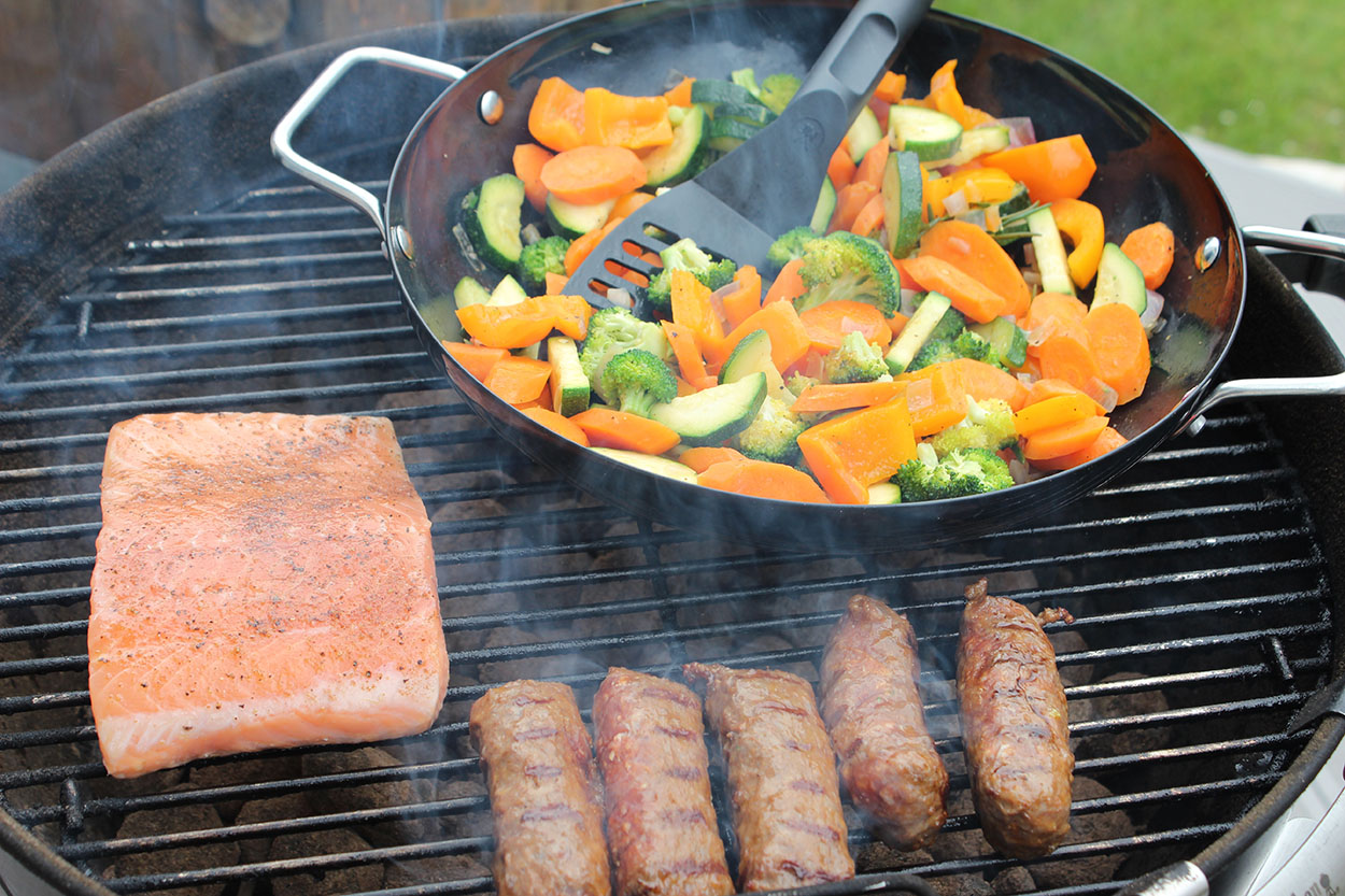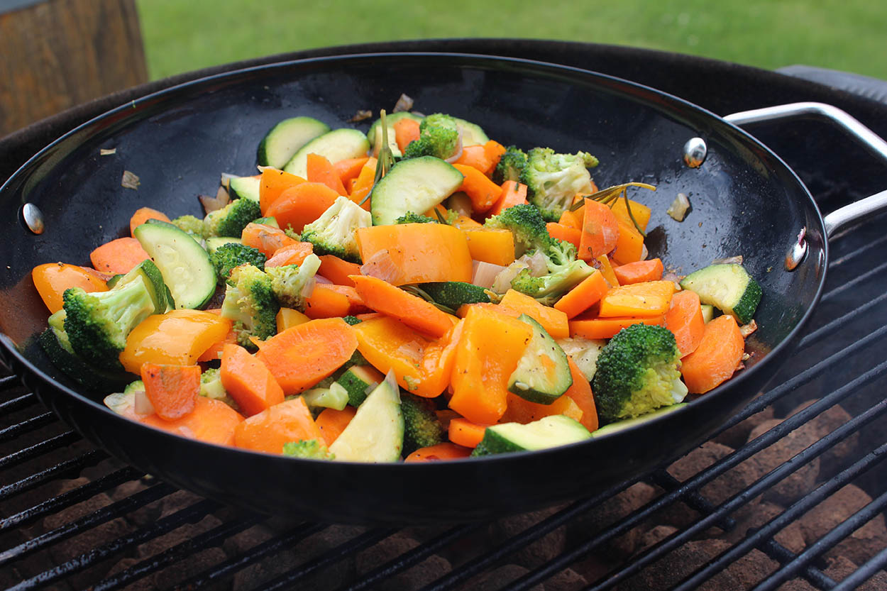 Neben Gemüse kann man darin natürlich auch noch andere Sachen direkt auf dem Grill anbraten. So zum Beispiel Fisch, Garnelen oder Fleisch.